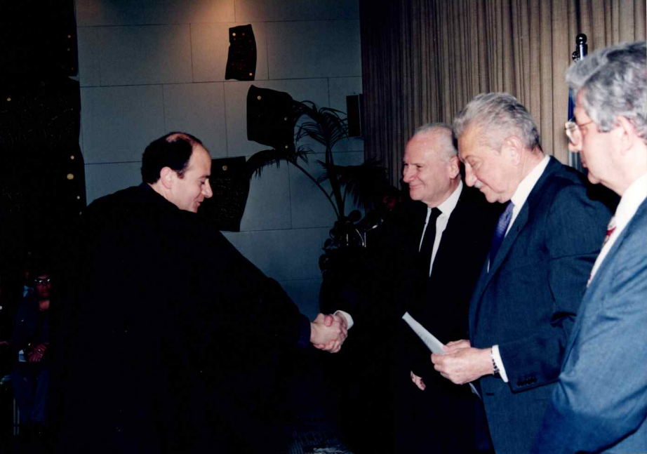 לחיצת יד לנשיא שמגר בטקס ההשבעה לשופט בית משפט השלוםינואר 1999